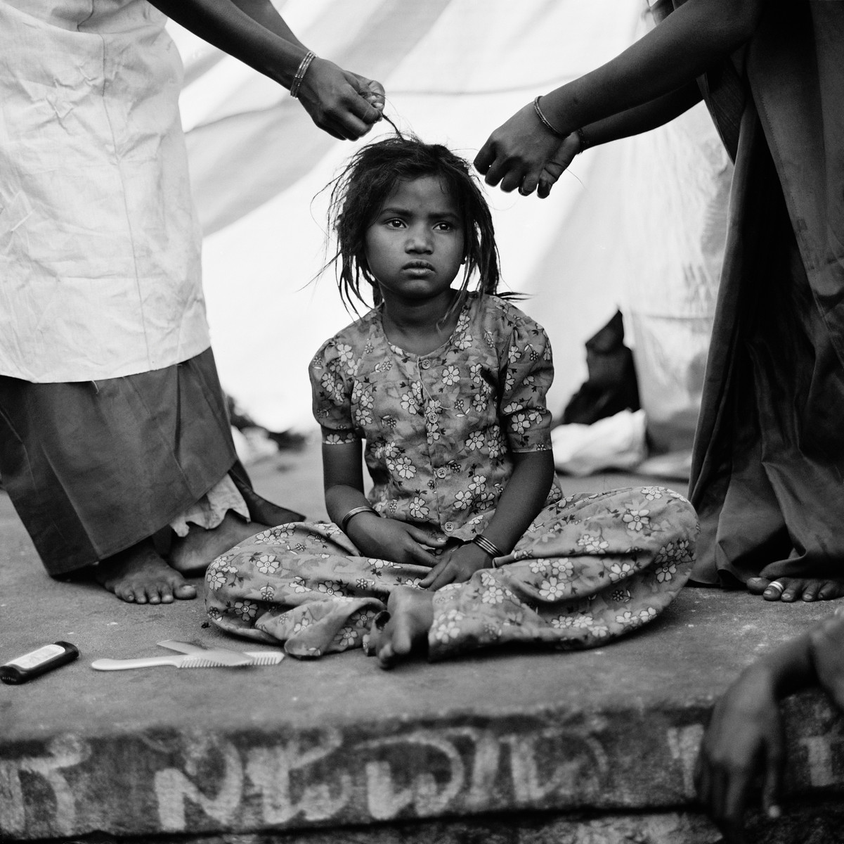 Applying talcum powder to her daughter's face and tying ribbons to her hair, she says: "I am going to die soon and then who will look after her?" The daughter of a devadasi, Parvatamma plans to dedicate her own daughter to Yellamma, a practice that is now outlawed in India.
